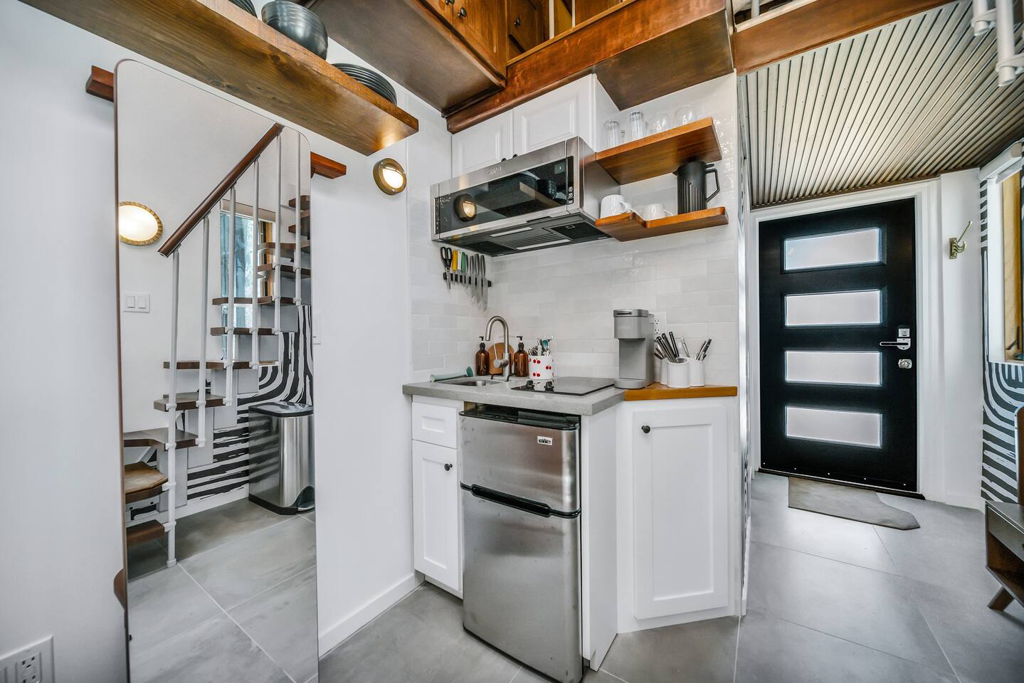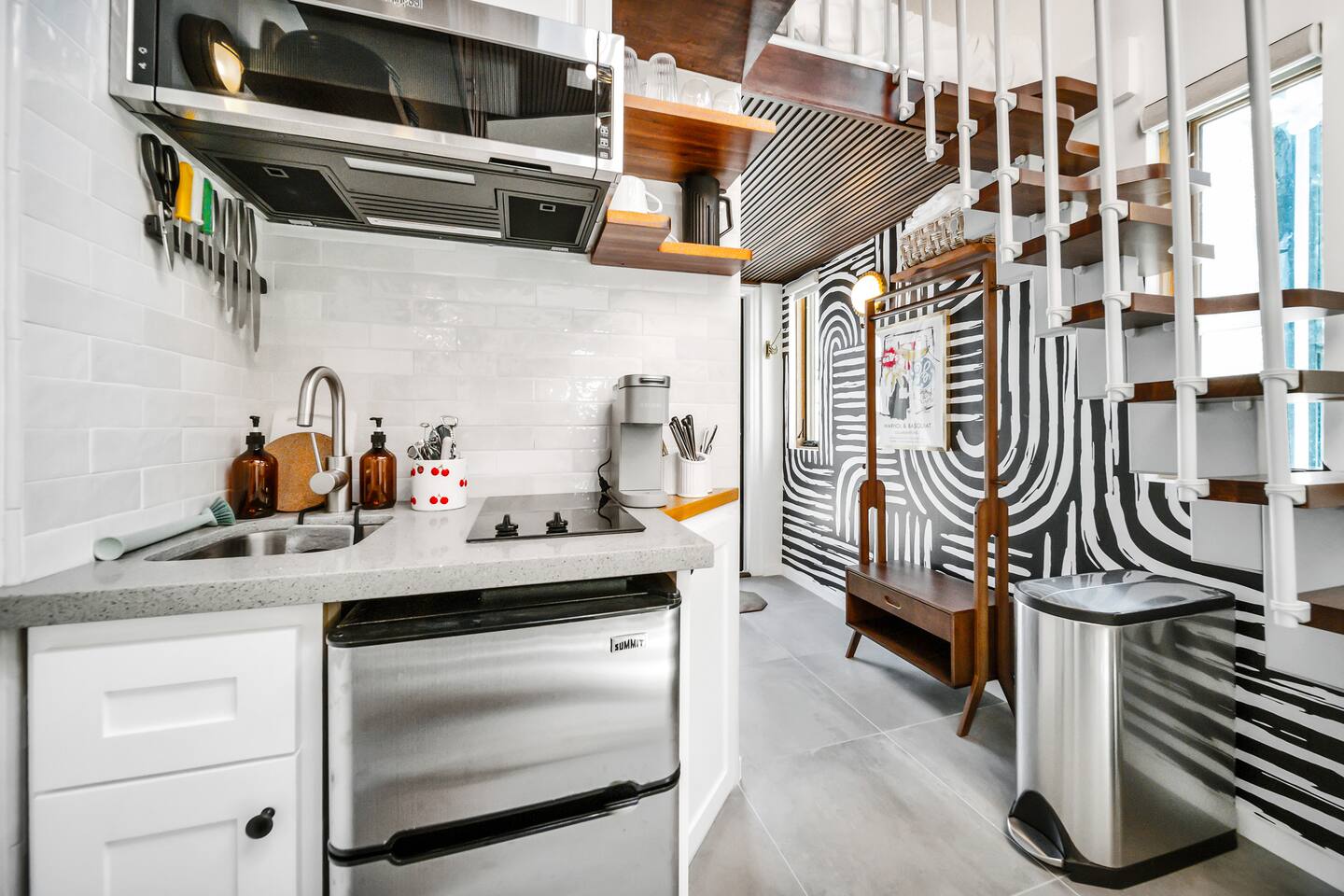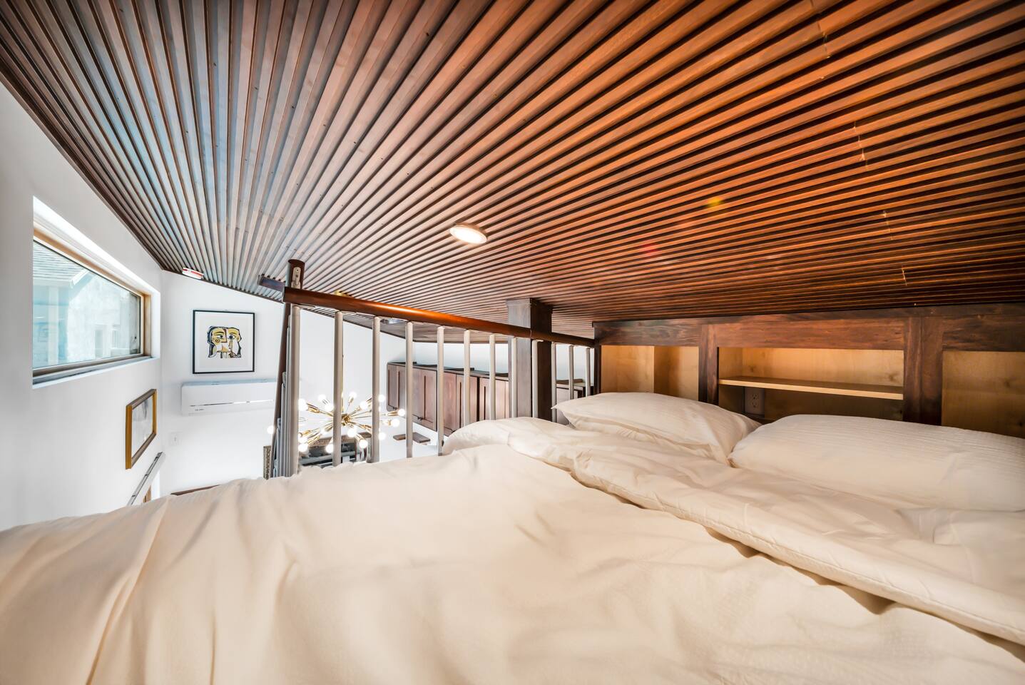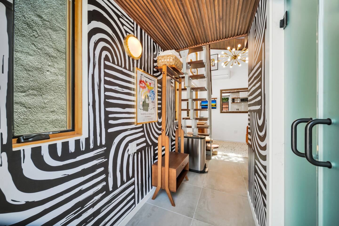 ✨ The Space Step inside this light-filled designer hideaway, featuring: – Soaring ceilings with custom woodwork and dramatic lighting – A plush lofted queen bed with privacy railing, accessible via a modern spiral staircase – Stylish burnt orange sleeper sofa on a plush shag rug for added guests – Sleek gourmet kitchen with induction cooktop, microwave, full sink, knife rack, and curated cookware – Spa-inspired bathroom with high-end tile and rainfall shower (not pictured) – Hidden storage throughout and beautifully crafted cabinetry 🪟 Floor-to-ceiling windows invite natural light while offering picturesque views of surrounding trees and hills. Enjoy your morning coffee on the outdoor patio area, surrounded by native California landscaping and birdsong. 🌴 Highlights – Ultra-modern spiral staircase – Designer lighting fixtures and mirrored accents – Custom cabinetry and thoughtful, space-savvy design – Air conditioning & heating – Smart TV and high-speed WiFi – Walkable to charming cafés, vintage shops, and trails 📍 Location Located in the artistic enclave of Eagle Rock, you're perfectly placed for exploring the Eastside. Nestled in a quiet residential area, this gem is the ideal mix of peaceful retreat and easy access to LA culture.