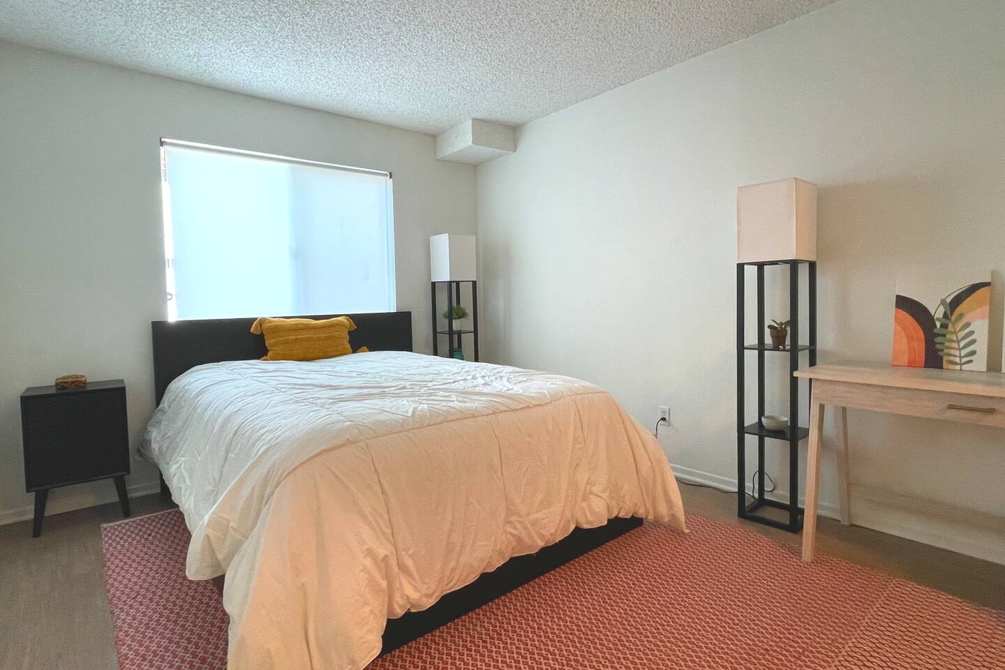 Keep it simple at this peaceful and centrally-located place. Beautifully furnished, 1 Bedroom / 1 Bathroom apartment downtown Los Angeles in the historic Pilipino neighborhood. Walking distance to Echo Park and an Uno Mercado / Target. The unit comes with a garaged car spot, balcony facing the corridor. Has a new dish washer, fridge, microwave, and stove. The bedroom has 1 queen bed.